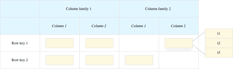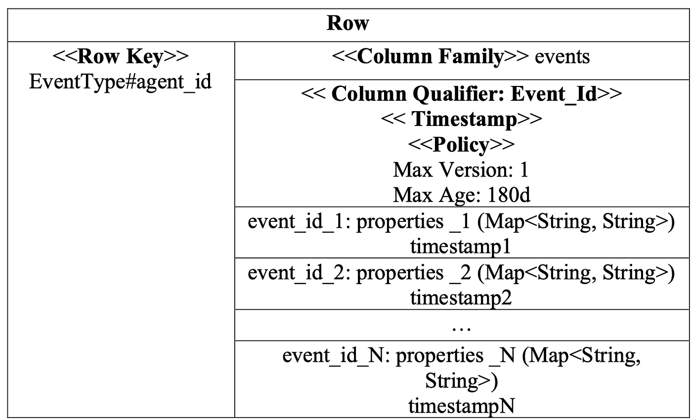 Historical Data Table records all the events which are processed from the streaming raw events. The event data in this table is organized according to the structure of each event with a column qualifier so that it is possible to quickly query a set of events at a certain time. In addition, the storage period of the column qualifier in this table is 180 days ~ 6 months, to save storage costs.