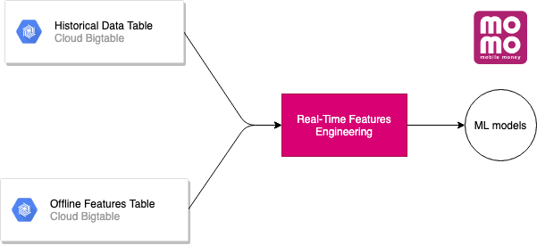 The idea is that when the model needs real-time prediction we will aggregate Historical Data and Offline Features to form Real-Time Features Engineering.